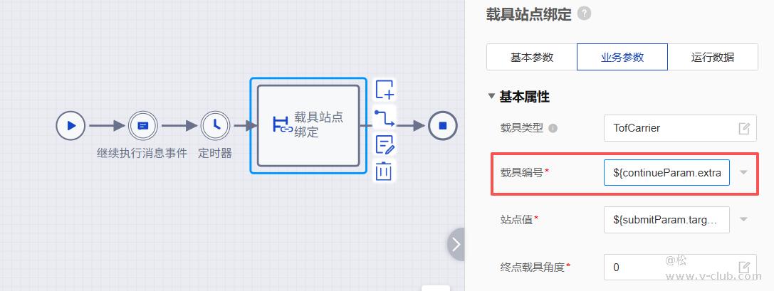 如果后面需要用这个参数,sdk就比较好写了:${continueParam.extra.values.sysCode}。比如下面是一个站点绑定的功能,上层通过触发接口传载具编号,然后平台自动绑定,载具编号就填写${continueParam.extra.values.sysCode},测完之后发现可以正常触发,也可以正常绑定到。