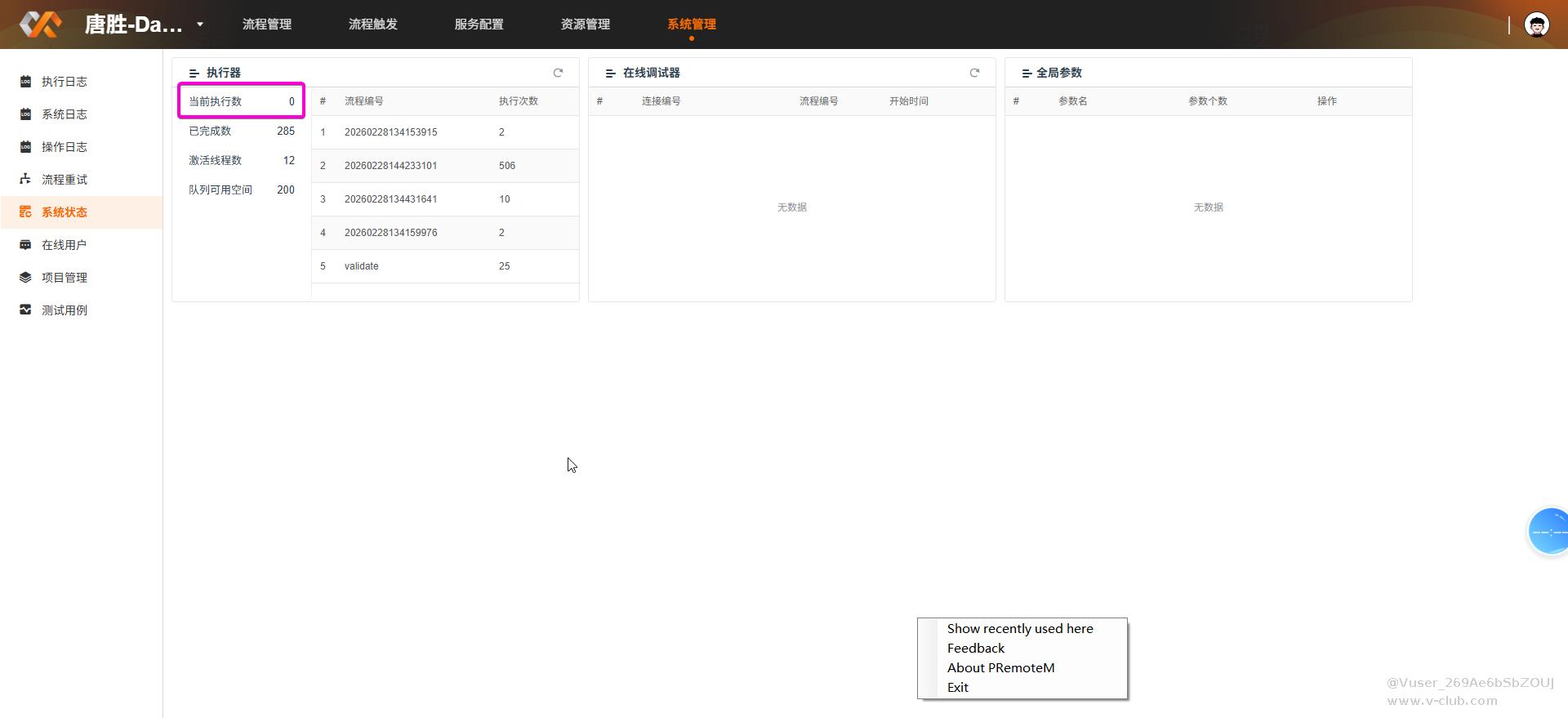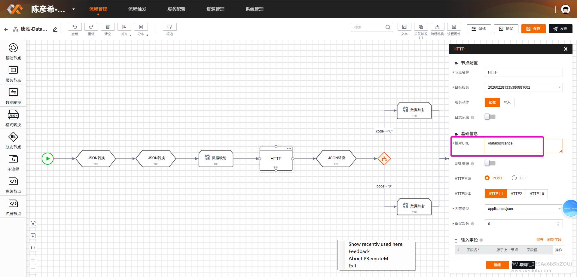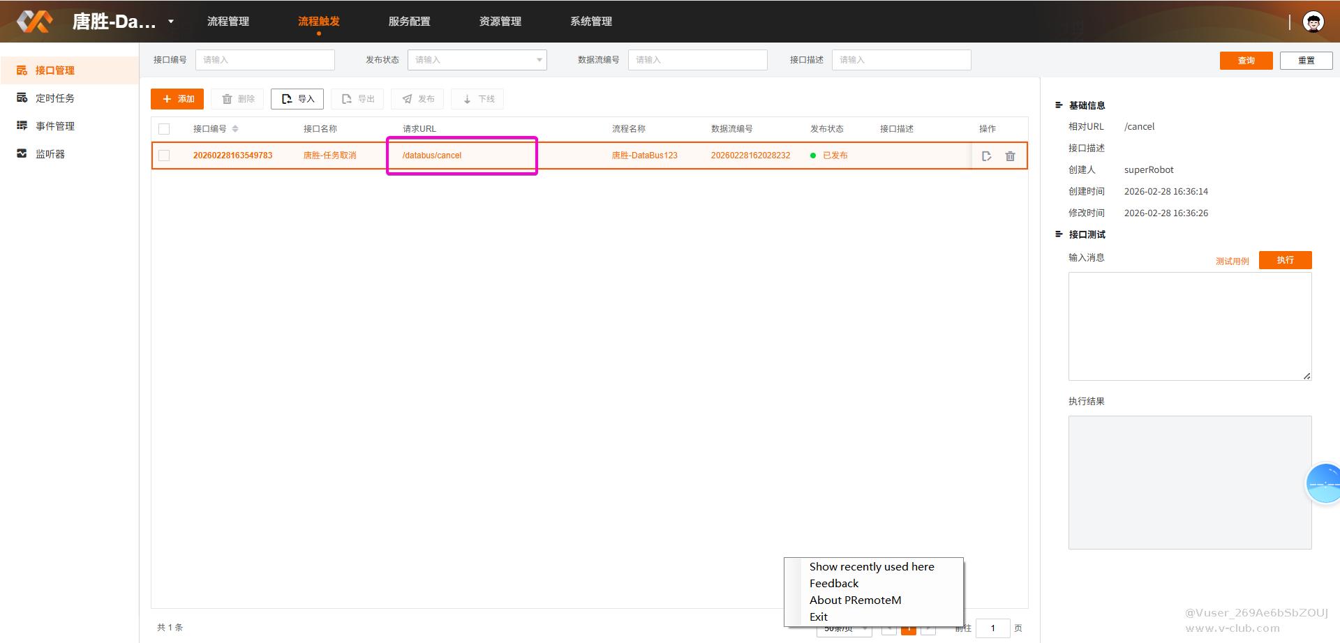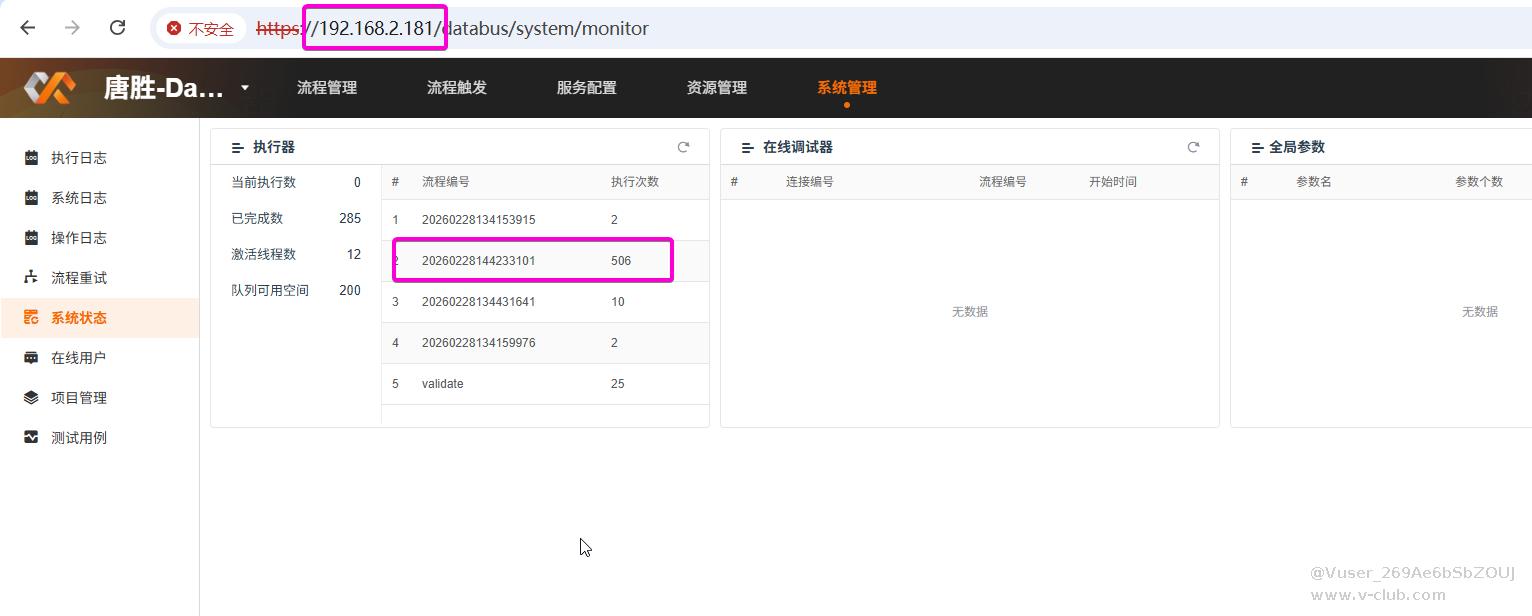 3.前一天另外一台服务器在培训DataBus的时候也是这种情况,发现共同点都是某一个流程的调用次数暴增;排查方向往流程配置里面看,发现流程里面的Http链接有问题,流程=》接口=》流程进入死循环导致线程使用暴增,其它同事无法进行实操;