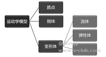 在上一节的定义中提到,运动学的研究不考虑力和物体自身的物理性质,所以运动学的模型也对物体的部分性质做了理想化和抽象化的处理,基本分类可参考下图: