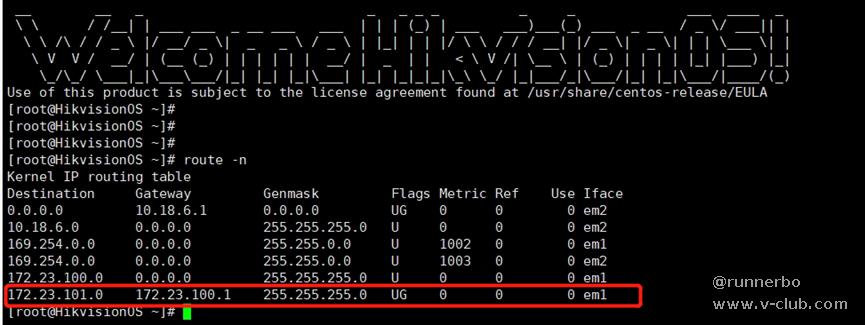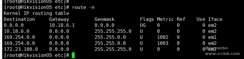 2、改完 route –n ,确认下是否添加成功,添加成功会显示如下,临时路由重启系统会失效。