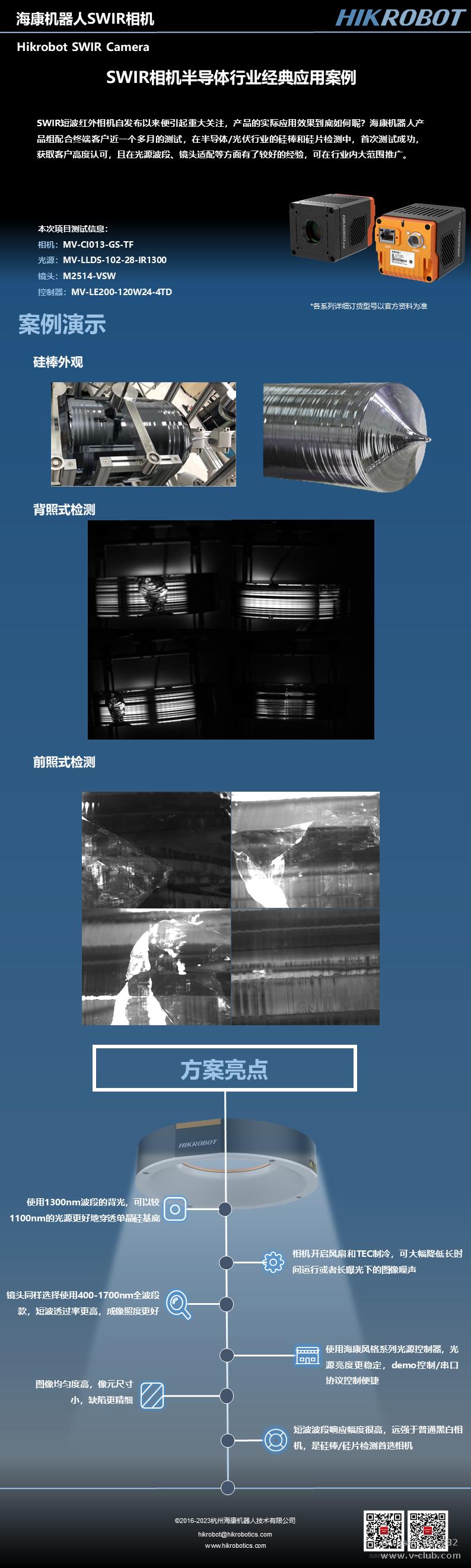 SWIR短波红外相机自发布以来便引起重大关注,产品的实际应用效果到底如何呢?海康机器人产品组配合终端客户近一个多月的测试,在半导体/光伏行业的硅棒和硅片检测中,首次测试成功,获取客户高度认可,且在光源波段、镜头适配等方面有了较好的经验,可在行业内大范围推广。